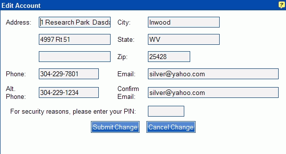 Click Cancel Change if you decide not to accept the change you made. You are returned to the Account Summary screen. Your information remains unchanged.