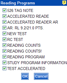 the Reading Programs dialog example,